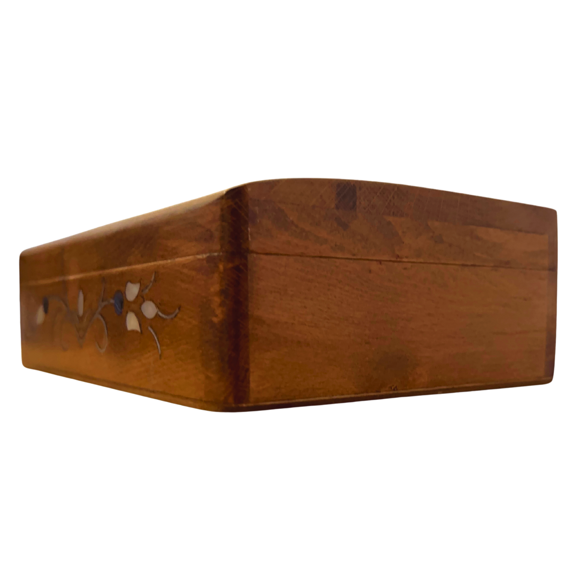 Mit einem hellen Walnuss-Finish, echter Perlmuttintarsie und weinrotem Samtfutter vereint diese Box hochwertige Materialien mit traditioneller Handwerkskunst aus Damaskus. Das Ergebnis ist ein zeitlos elegantes Kunstobjekt von besonderem kulturellem Wert.