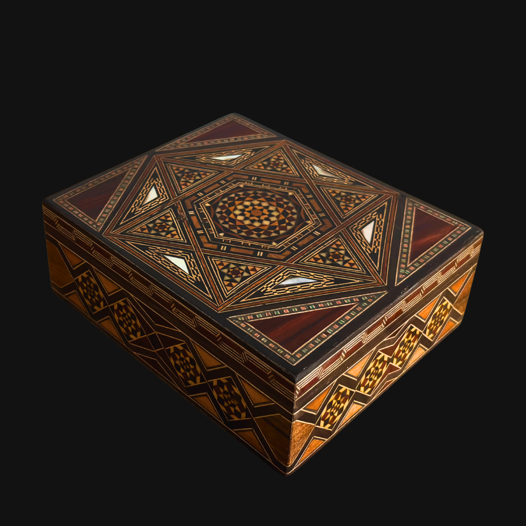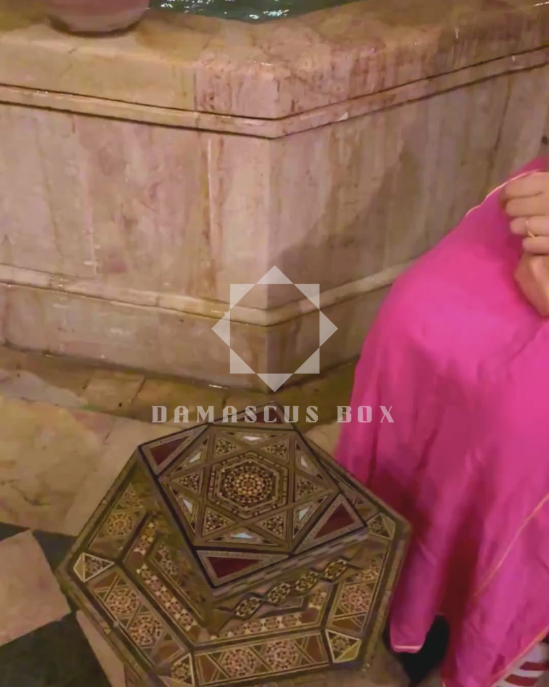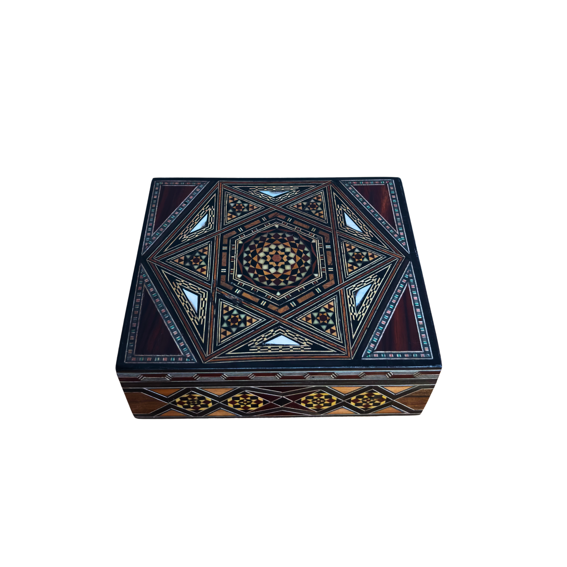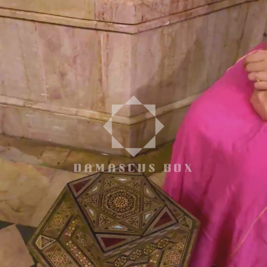 Şam mozaik kutusu, Gaby Al Dayeh, sedef kakma, Suriye el sanatı, kadife astar, el yapımı lüks hediye, Damascus Box
